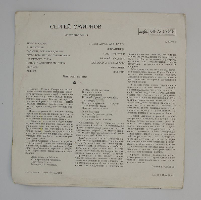 Сергей Смирнов — «Стихотворения»: ожившие строки на виниле!
