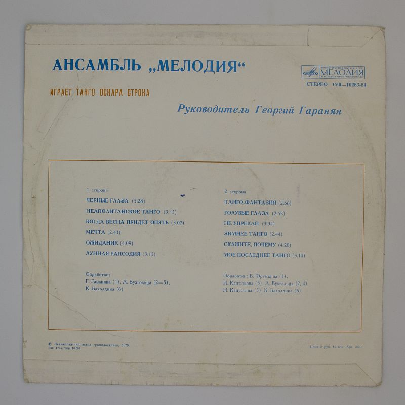 Ансамбль «Мелодия» представляет вашему вниманию альбом «Танго Оскара Строка» — настоящий подарок для любителей этого чарующего жанра. В каждой мелодии чувствуется душа и мастерство композитора, а исполнение ансамбля придаёт музыке особую глубину и выразительность.