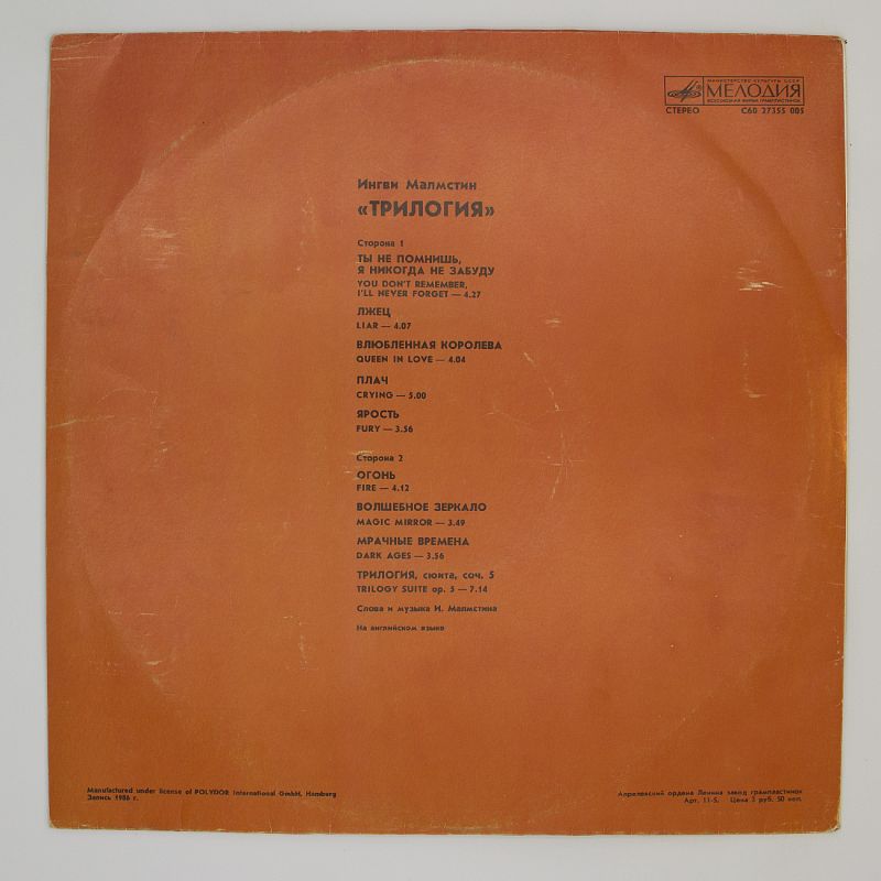 Погрузитесь в тёплый аналоговый звук виниловой пластинки и ощутите всю мощь и красоту музыки Ингви Мальмстина. Не упустите свой шанс создать идеальный вечер с этим шедевром. Добавьте его в корзину и подарите себе незабываемые музыкальные впечатления!