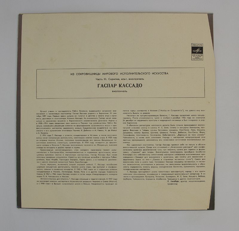 Виолончель Гаспара Кассадо: откройте мир классической музыки на виниле!