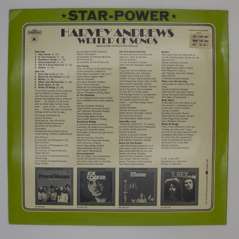 Харви Эндрюс — один из тех исполнителей, которые способны тронуть душу своими мелодиями. Альбом «Writer Of Songs» — это не просто сборник песен, это путешествие по волнам эмоций и воспоминаний.