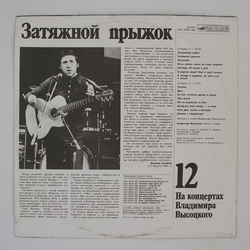 Погрузитесь в тёплый аналоговый звук виниловой пластинки и насладитесь творчеством Владимира Высоцкого. Успейте купить альбом «Затяжной прыжок» и создайте идеальный вечер с музыкой, которая будет звучать в унисон с вашими чувствами.